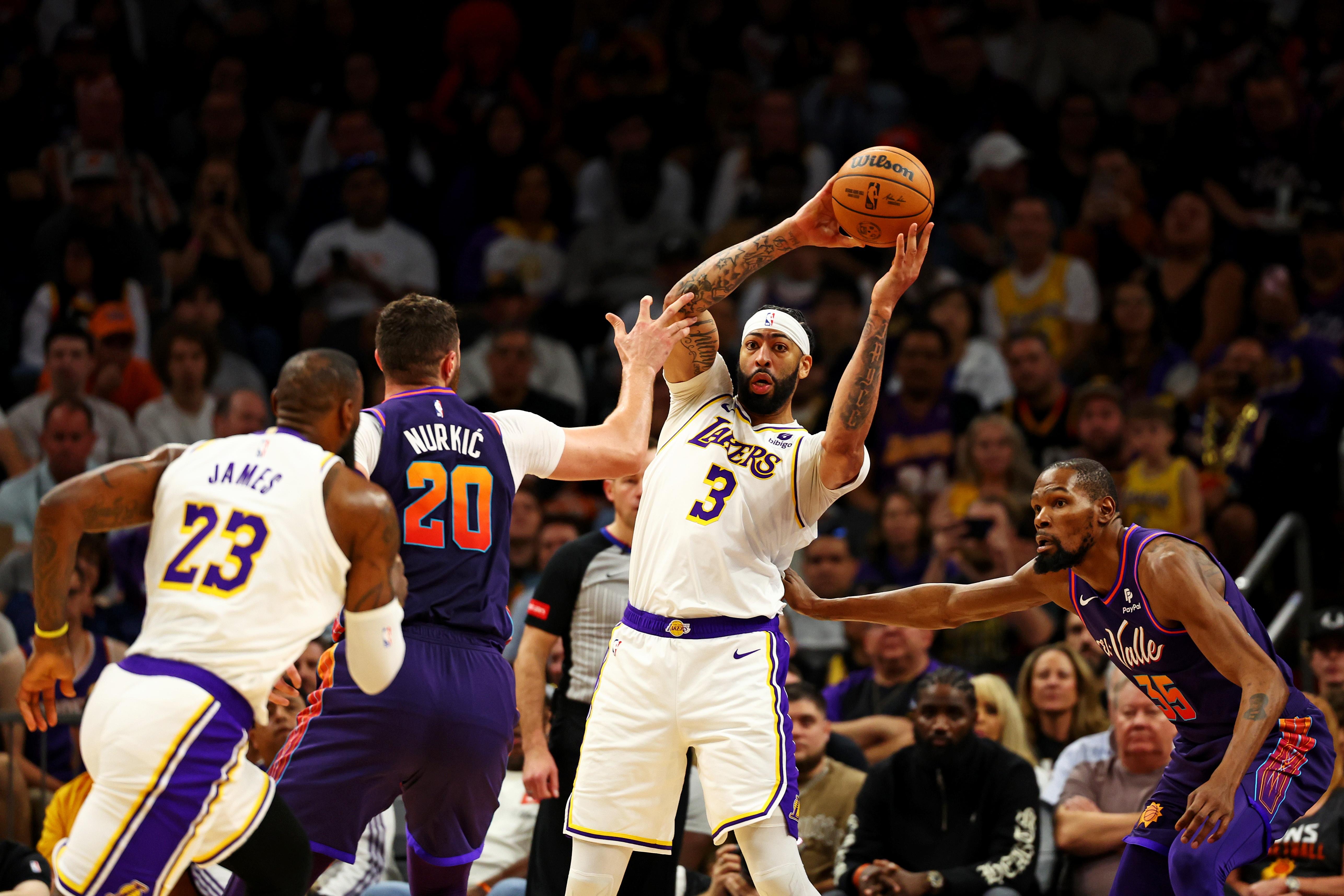 太阳也狠抓湖人的防守弱点,比尔生突老詹暴扣、布克平推拉塞尔上篮、布克低位单打里夫斯硬解,尤其摆明了欺负湖人两个后卫,湖人单防确实玩不了,上协防就漏空位三分。