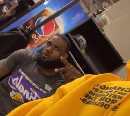 赛后的湖人更衣室,JR兴奋地开起了直播,向网友们第一时间分享球队晋级的喜悦。
