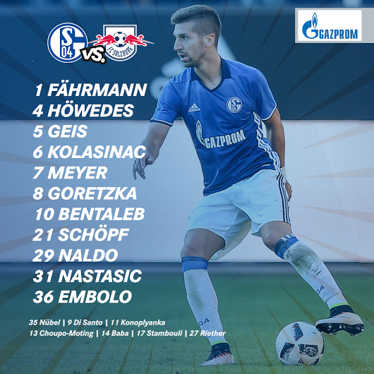 亨特拉尔因重感冒未能进入比赛的大名单。首发阵容上有四处变化。中场位置上,迈尔,绍普夫和盖斯首发。纳尔多,科拉希纳茨出现在防守位置上。斯坦布利,舒波莫廷,里特和巴巴坐上替补席。战术上沙尔克04排出了4-2-3-1的阵型。