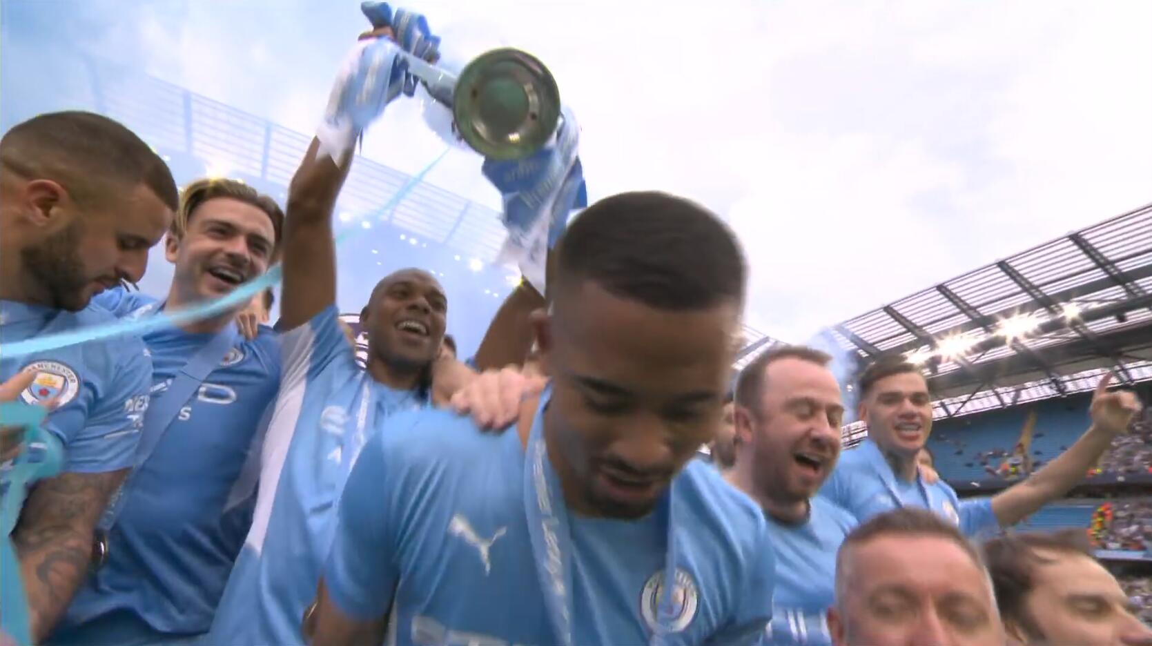 直播吧5月23日讯 2021-2022赛季英超收官战,曼城主场3-2大逆转阿斯顿维拉,锁定本赛季英超冠军,完成五年四冠壮举。