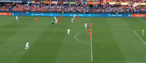 第54分钟,荷兰扳平比分!阿克后场长传,第一点贝尔温摆渡德佩横传随后邓弗里斯禁区右路打门球进,裁判吹罚越位在先,随后经过var提示进球有效,荷兰2-2波兰。↓