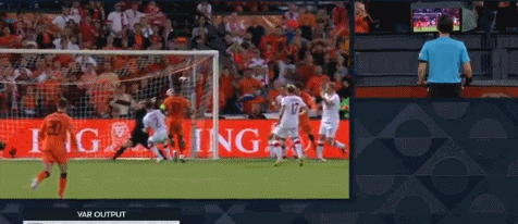 第90分钟,荷兰获得点球!德佩门前补射被扑后卡什手球,裁判观看var后给了点球,德佩主罚点球打在立柱上弹出。↓