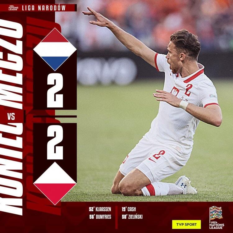北京时间6月12日凌晨2点45分,2022-23赛季欧洲国家联赛A级第四组第三轮迎来一场焦点战,荷兰队坐镇主场迎战波兰队。上半场,卡什进球为波兰队取得领先;下半场,泽林斯基破门扩大比分,克拉森和邓弗里斯在4分钟内连进两球扳平比分,补时阶段荷兰队获得点球,可惜德佩踢在了立柱上。最终,荷兰队2-2战平波兰队,3轮拿到7分排在小组头名。