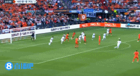 第19分钟,波兰进球!卡什右路接大范围转移后盘带进禁区小角度低平球射门球进。荷兰0-1波兰。↓