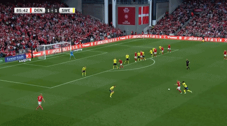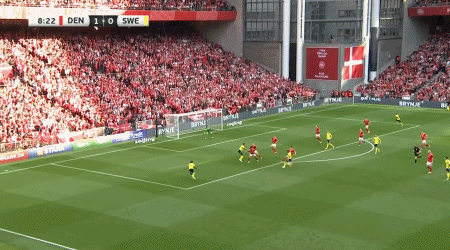 第87分钟,尤尔曼德助攻,埃里克森外围远射破门,丹麦2-1