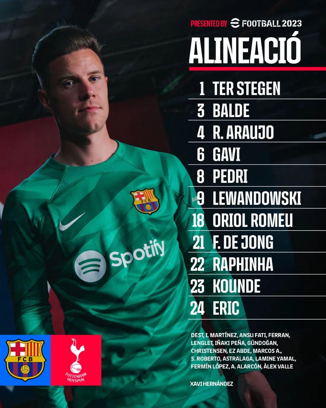 中场:加维 (60' 阿卜杜),佩德里 (60' 京多安),罗梅乌(80' 亚马尔),德容