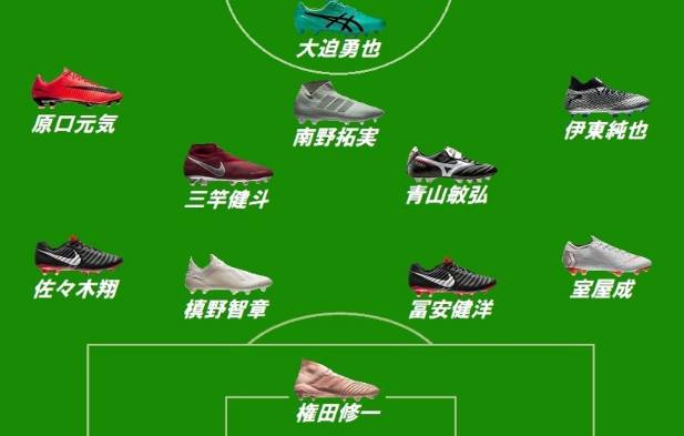 12-权田修一;4-佐佐木翔、20-槙野智章、16-富安健洋、3-室屋成;8-原口元气、17-青山敏弘、18-三竿健斗、14-伊东纯也;9-南野拓实、15-大迫勇也
