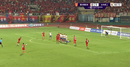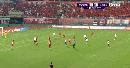 第40分钟,泰山前场打出配合,黄政宇传中被破坏