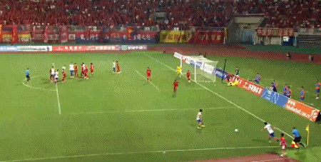 第43分钟,黄希扬任意球打门,球打高了