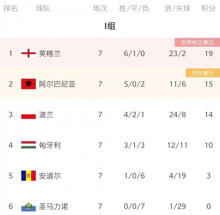 上半场奇尔维尔首开纪录,萨卡扩大比分,下半场亚伯拉罕和普劳斯破门,格拉利什替补造点后建功。最终英格兰客场5-0大胜安道尔,I组积分榜方面,三狮军团积19分保持不败领跑。