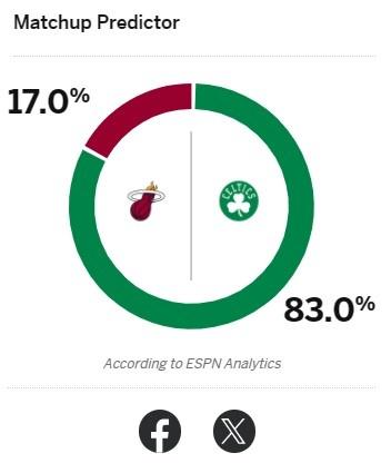ESPN赛前预测,凯尔特人胜率83%,热火胜率17%。