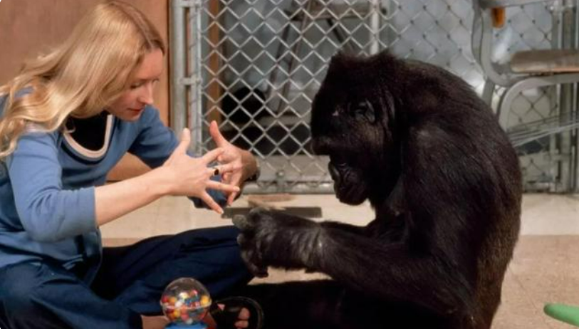 在科学器械的帮助下,动物学家潜心研究“人类的亲戚”黑猩猩,发现了它们也有一定的语言和社会能力。 但是和人类不同,黑猩猩可以用动作和面部表情进行沟通,但是却没有语言,发出的声音也大多是无意义的,无法系统性交流信息。