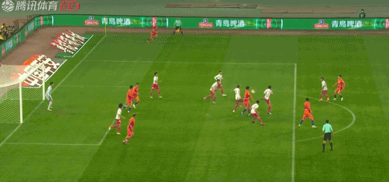 第11分钟,莫雷诺做球,孙世林回敲,曹赟定劲射破门。山东鲁能0-2落后上海申花。