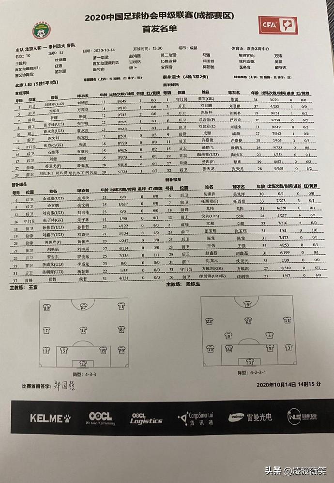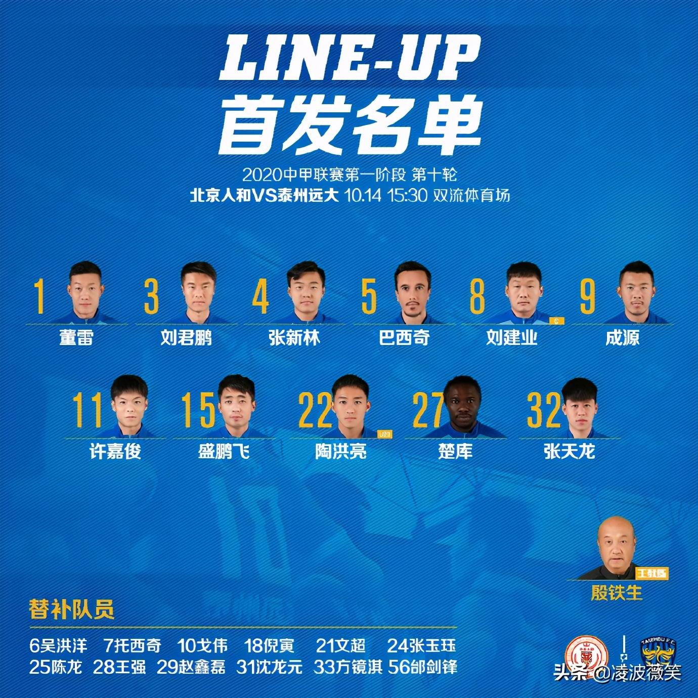 北京时间10月14日下午,在2020赛季中甲联赛第一阶段第10轮即最后一轮成都赛区的一场焦点对话中,北京人和对阵泰州远大。目前,上半场比赛已经结束,泰州远大凭借许嘉俊的抽射建功,以1-0暂时领先北京人和。如果以这个比分结束,那泰州远大将逆袭超越北京人和,拿到该赛区最后一张晋级冲超组门票。