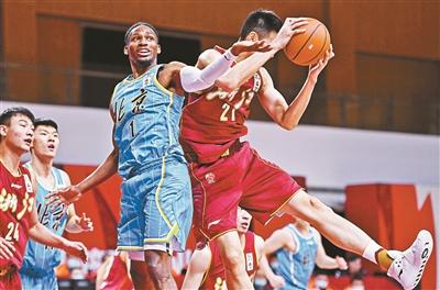 1月14日,北京首钢队球员吉布森(左)在比赛中