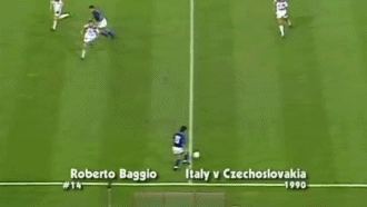 如果说巴乔的俱乐部生涯是高光与惋惜并存的话,那他的国家队生涯中悲情的成分就更多,尤其是在世界杯赛场。从1988年在友谊赛中对阵荷兰上演国家队首秀开始,巴乔就逐渐确立了自己的地位。在90年世界杯上,作为轮换球员的巴乔虽然登场时间不多,但他却是球队获得季军的重要功臣。在小组赛最后一轮对阵捷克斯洛伐克的比赛中,替补登场的他攻入一记精彩的长途奔袭进球,成为世界杯历史上的经典。