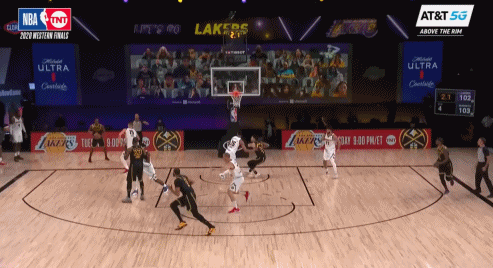隆多发边线球詹姆斯卡位浓眉绕桩跑位,姆拉姆利和格兰特交流失误,浓眉得到空位三分机会出手,约基奇补防为时已晚,湖人压哨绝杀掘金。这轮系列赛,湖人最终4-1淘汰掘金杀进决赛,并如愿夺冠。