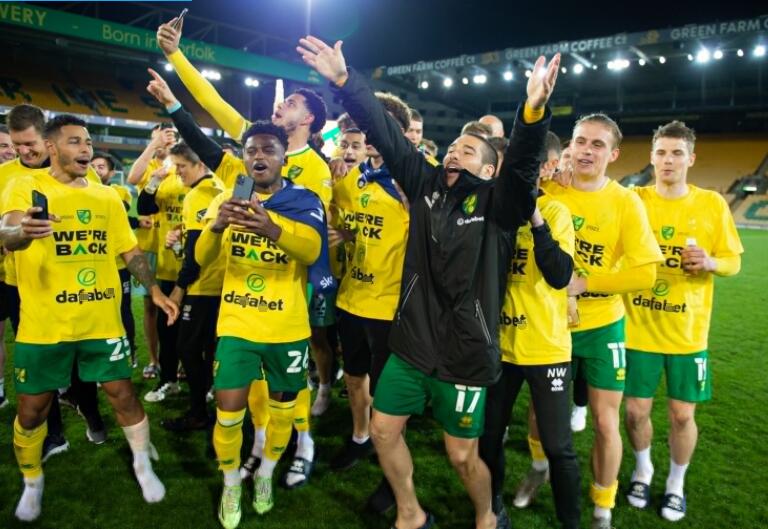 主场惨遭3-1逆转,诺维奇全队却庆祝如同夺冠,因为在7小时前,联赛第3的斯旺西主场跟韦康比流浪者打成2-2平手,让诺维奇提前5轮锁定英冠前2名,也就是说已锁定一个升级名额。诺维奇是著名的英超升降机,这已经是他们8年内第3次升级了。