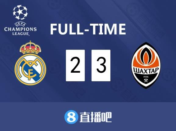 全场比赛结束,皇家马德里2-3顿涅茨克矿工。