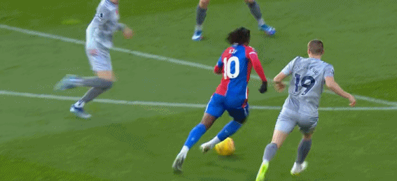 第5分钟,埃泽造点,随后亲自主罚命中,水晶宫1-1埃弗顿