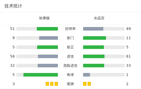 水晶宫 首发:2-沃德, 9-乔丹-阿尤, 15-施卢普, 1-约翰斯通, 19-威尔-休斯, 16-约西姆-安诺生, 8-莱尔马, 22-爱德华, 10-埃泽, 6-格伊, 3-米切尔