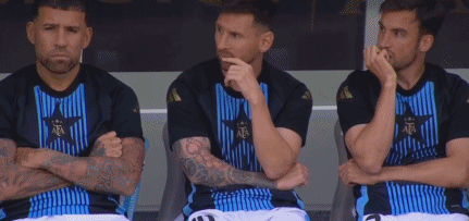 第18分钟,比赛稍显沉闷,镜头给到替补席的梅西