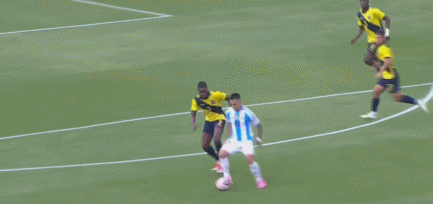 第34分钟,梅西挑传做球,恩佐反击带球突破晃倒防守后一脚爆射,皮球被后卫封堵出底线↓
