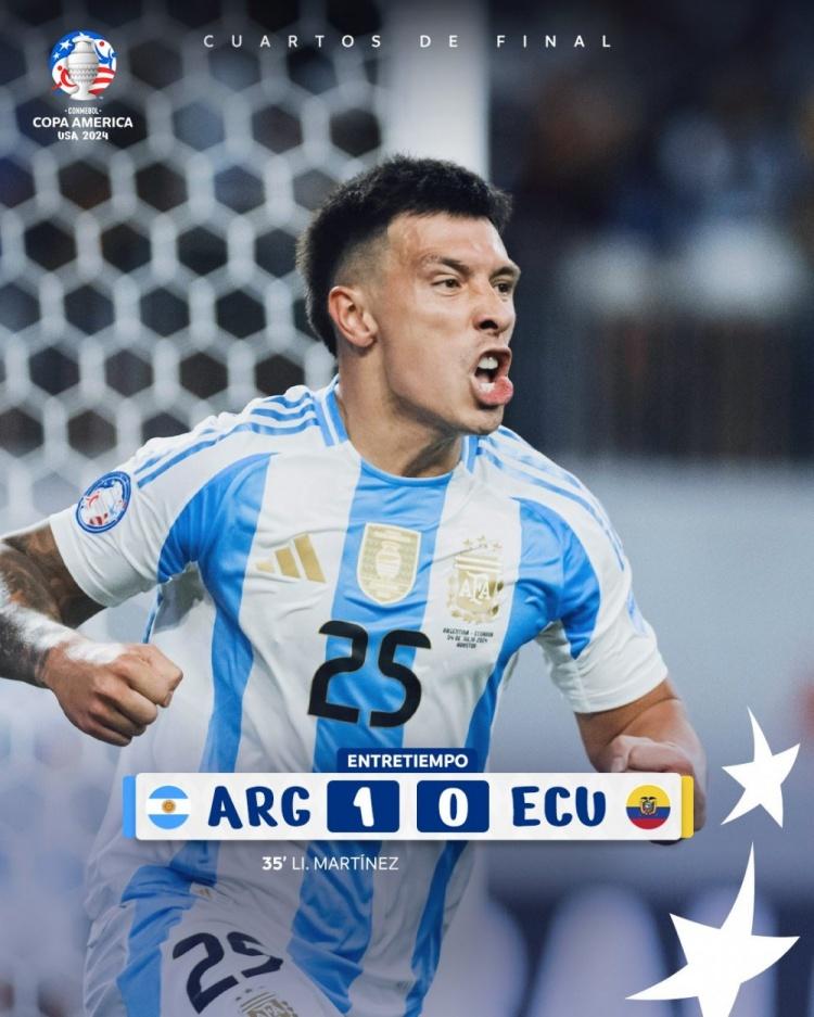 第35分钟,阿根廷角球机会,麦卡利斯特前点后蹭,后点无人盯防的利桑德罗后插上头槌破门!阿根廷1-0领先↓