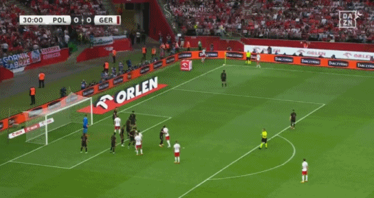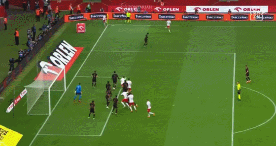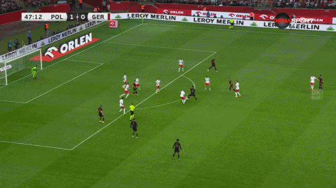 第55分钟,基米希在前场得球,他趟了一步右脚大力抽射,皮球稍稍高出横梁。第57分钟,波兰球员在禁区内争顶时疑似手球,裁判到场边观看VAR后认定不是点球。