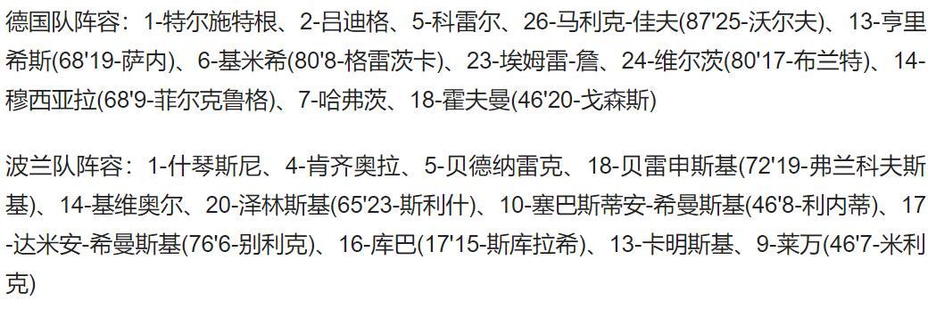 本场比赛是波兰老将库巴-布瓦什奇科夫斯基的国家队告别战。这位37岁的老将曾在德甲闯荡多年,效力过多特蒙德和沃尔夫斯堡。德国队作为欧洲杯东道主不用参加预选赛,但他们在此前的两场热身赛中2-3不敌比利时队,3-3战平乌克兰队,已经两场不胜。