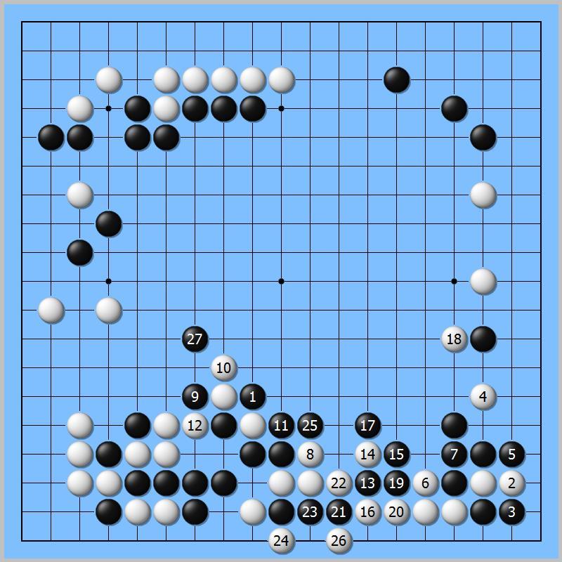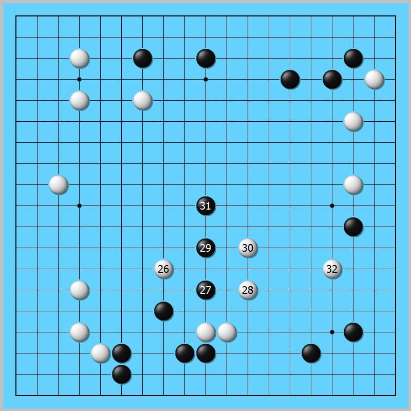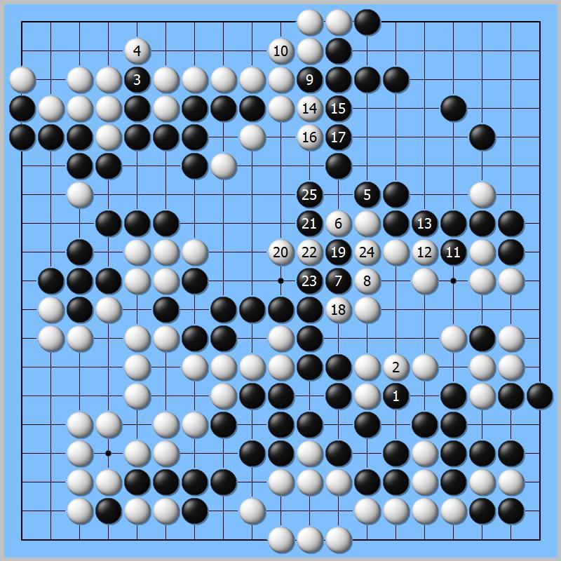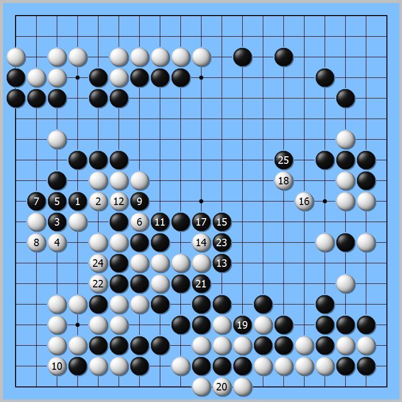 实战图六:到黑25黑棋胜局已定。因为小官子争无可争了。