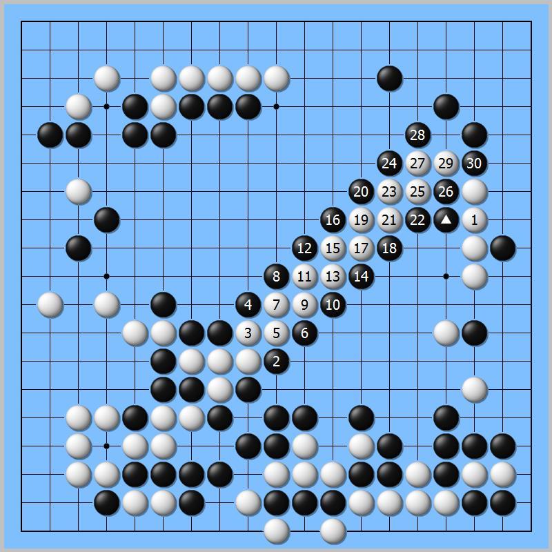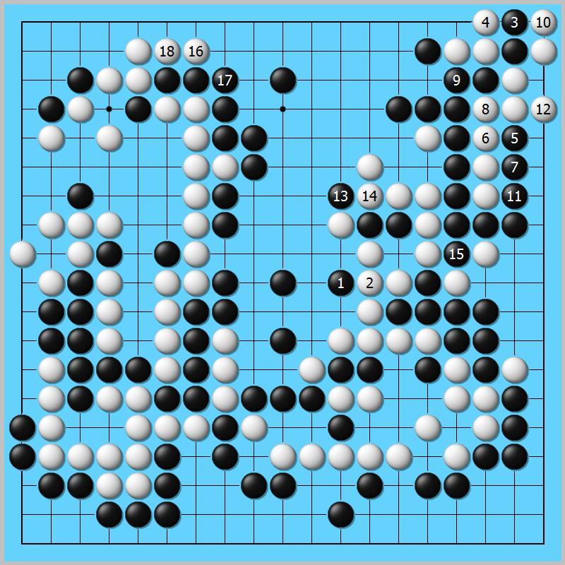 实战图八:双方在右上角的应接很有趣味,形成了不常见的转换,