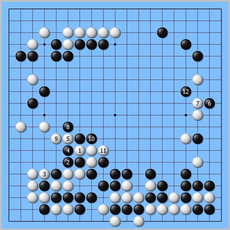 实战图二:且看坂田黑6,黑12漂亮的组合拳。黑6是搜根,黑12是引征,