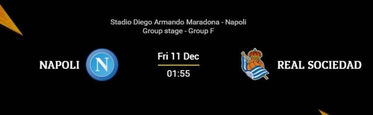 那不勒斯于意甲4胜1负列第2,首轮主场0-1阿尔克马尔。皇家社会4胜2平1负领跑西甲,首轮1-0客胜里耶卡。无历史交锋记录。阵容方面:那不勒斯打4231,佩塔尼亚突前,因西涅、洛博特卡、波利塔诺先发。皇家社会排433,大卫-席尔瓦、伊萨克、梅里诺、蒙雷亚尔先发。