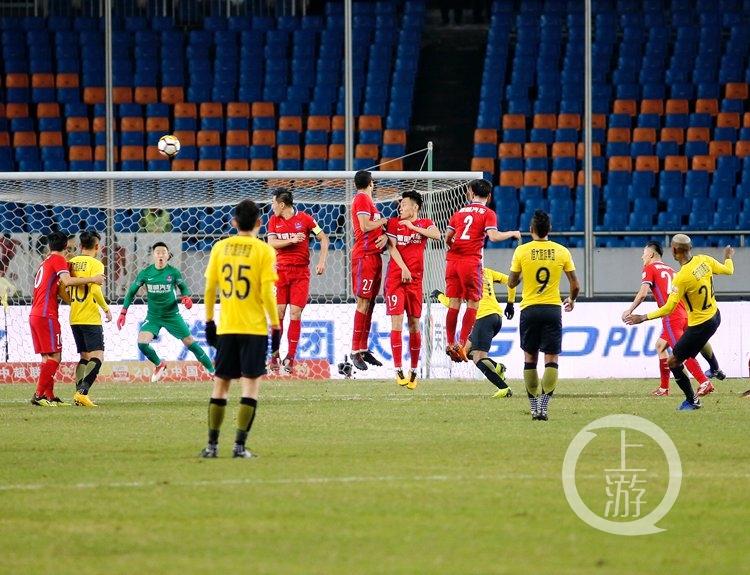 全场比赛结束,广州恒大1-1战平重庆斯威。