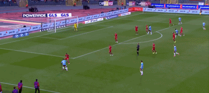 第52分钟,德布劳内禁区前内切兜射!偏了一点点↓