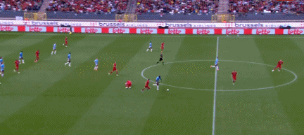 第82分钟,特罗萨德禁区内右侧有射门机会,选择传给卢卡库,但被拦截了↓
