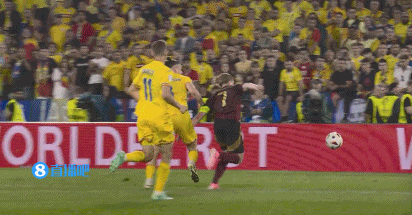 第79分钟,卡斯特尔斯开大脚,罗马尼亚后卫头球冒顶!德布劳内突然获得单刀!扛住德拉古辛铲射破门!比利时2-0罗马尼亚↓