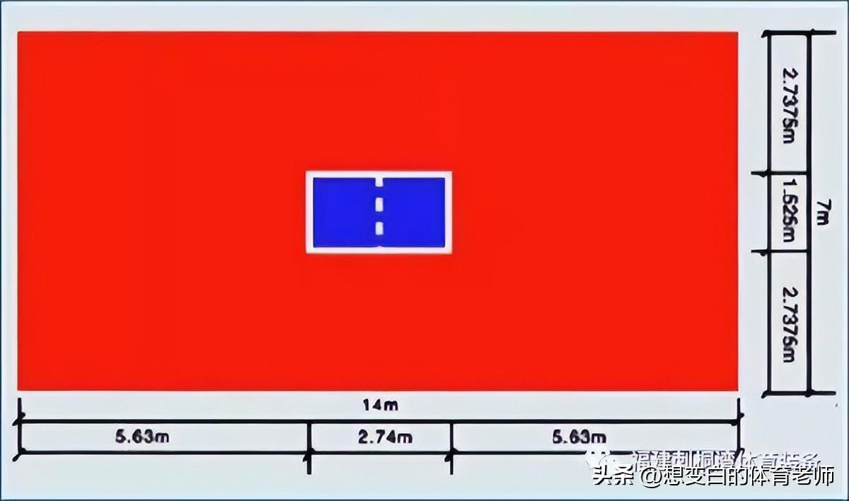 乒乓球比赛场地不应小于长14米、宽7米、高4米。 赛区应用75厘米高的深色挡板围起,与相邻的比赛场地及观众隔开。比赛场地应为坚实不滑的硬木。地板不应呈淡颜色或明显反光。挡板应轻便稳妥,在运动员冲撞挡板时不至于受伤。挡板宽为1.4米。比赛场地仅限于室内,风速不宜大于0.2米/秒。