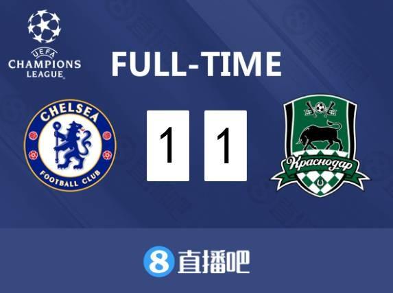 最终全场比赛结束,切尔西主场1-1战平克拉斯诺达尔。