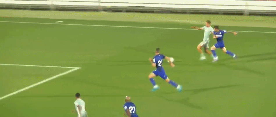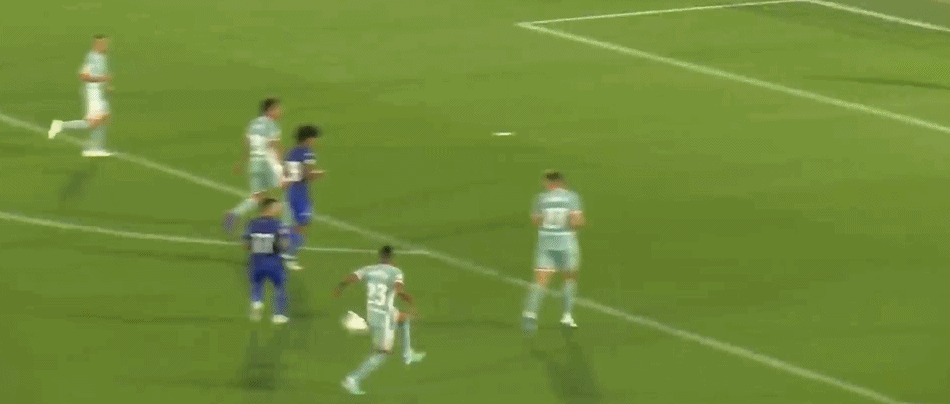 第23分钟,科雷亚右路横传,费尔梅伦将球碰出底线