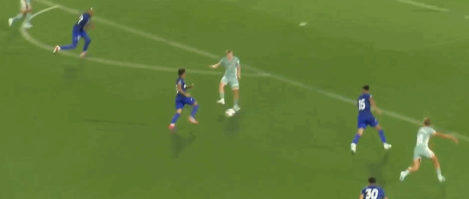 第88分钟,费尔南德斯踢倒对方球员,裁判向其出示红牌