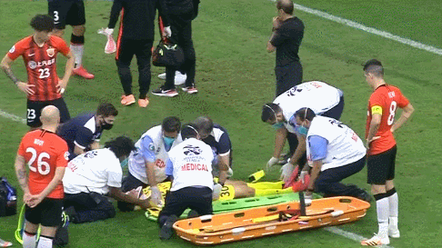 第3分钟,上港前场左路获任意球,买提江主罚传中,于睿与门将帕夫莱西奇争抢落点时头部相撞,两人头部随后又直接摔在地上,导致纷纷受伤且久久不起。双方队医第一时间入场,于睿经过检查处理后站了起来且重新投入比赛。帕夫莱西奇则疑出现短暂晕厥,随后帕夫莱西奇颈部被带上护具然后被抬上担架送出场外,替补门将贝尔随之换下帕夫莱西奇。