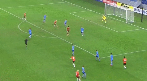 第90分钟, 悉尼门将贝尔冲到禁区外手球犯规,被直接红牌罚下,悉尼只能用格兰特临时充当门将,不过上港的任意球未能形成威胁。