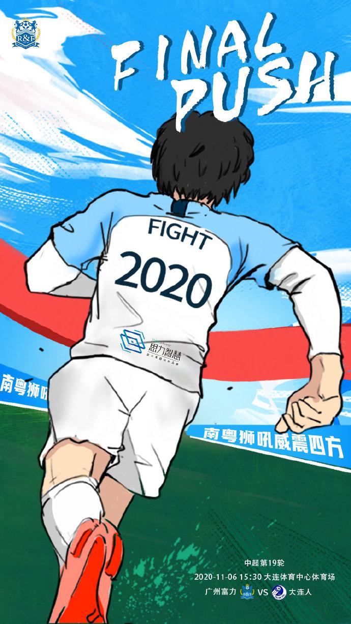 广州富力首发:22-韩佳奇(U21)、3-托西奇、5-李松益、19-姜积弘、20-唐淼、25-陈哲超、36-黄政宇(U23)、8-登贝莱、21-常飞亚、10-萨巴、11-雷纳迪尼奥