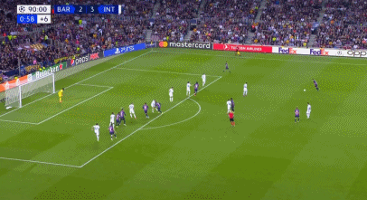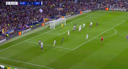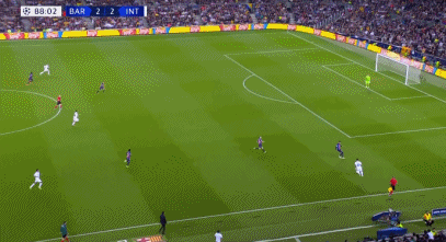 第49分钟,巴斯托尼左路起球传中,皮克眼神防守,巴雷拉近距离抽射破门,国米扳平1-1。
