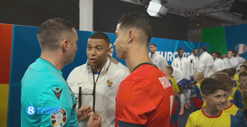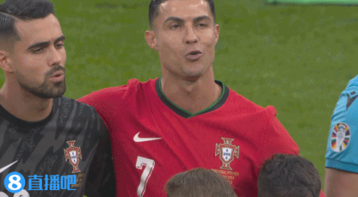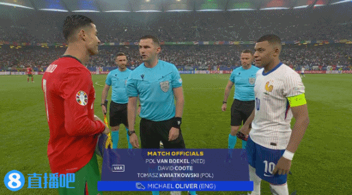 赛前,镜头给到双方队长C罗和姆巴佩。↓