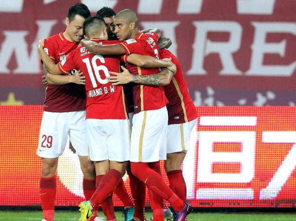 广州恒大首发阵容:32-刘殿座;5-张琳芃、3-梅方、35-李学鹏、25-邹正;16-黄博文、10-郑智(C)、8-保利尼奥;11-高拉特、7-阿兰、29-郜林