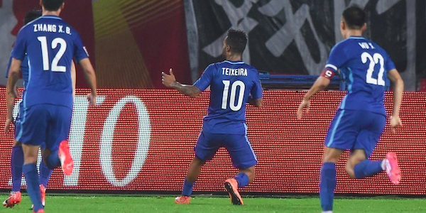 在广州恒大和江苏苏宁的第二回合比赛中,上半场特谢拉制造何超红牌,埃德尔直接任意球破门;下半场特谢拉又利用个人能力进球,最终苏宁2-1击败恒大,队史首夺中超联赛冠军。