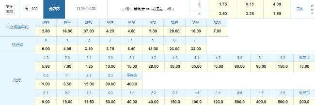 竞彩官方开出了 1.75(胜),3.15(平),4.00(负)的赔率组合,比分赔率中1:0最低,赔付为1赔5.80,1:1的比分第二低为1赔6.5,其余比分中,进球数不超过3的比分赔率均在1赔10以下,可以预见的是,哪怕是葡萄牙的进攻水平,都无法在乌拉圭身上取得过多进球。